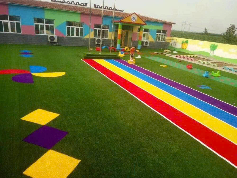 Dễ vệ sinh, tiết kiệm chi phí duy trì lâu dài.Ứng dụng của cỏ nhân tạo màu sắc trong trường mầm nonCỏ nhân tạo trường mầm non không chỉ cần an toàn mà còn phải giúp trẻ phát triển giác quan và tư duy sáng tạo. Việc sử dụng cỏ nhân tạo nhiều màu sắc mang lại nhiều lợi ích: